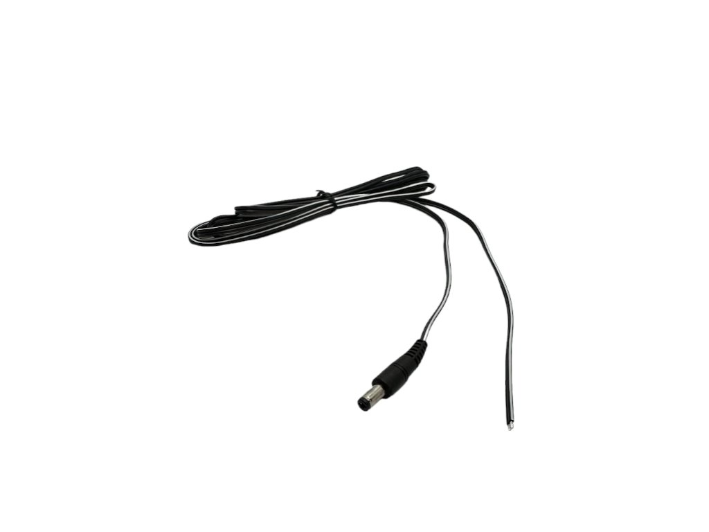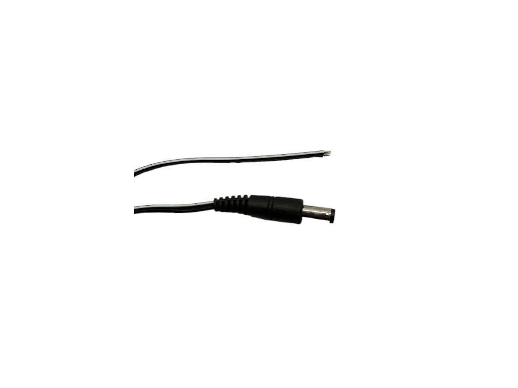 DC konektor 2,1/5,5 mm s černobílým kabelem 2x0,5 mm2 | 200cm | 2mm pocínované konce | PLUG
