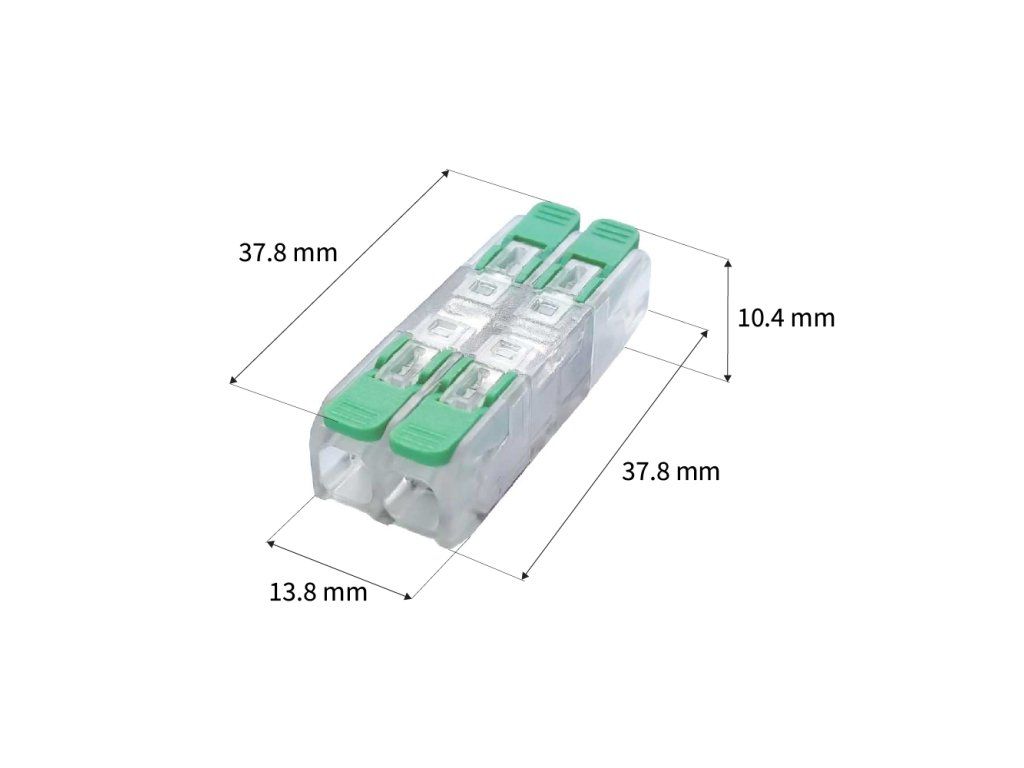 Praktická krabicová inline svorka s páčkami určená pro rychlé, bezpečné a spolehlivé spojování vodičů. Vhodná pro pevné i lankové vodiče v rozsahu 0,5–2,5 mm².