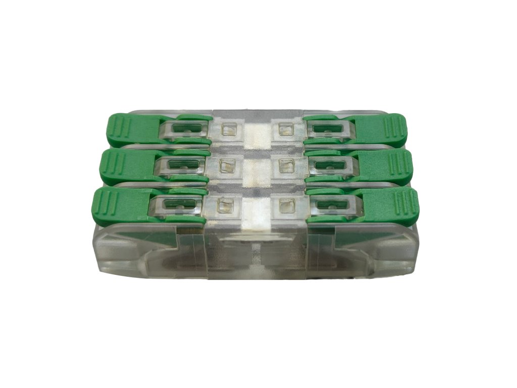 Praktická krabicová inline svorka s páčkami určená pro rychlé, bezpečné a spolehlivé spojování vodičů. Vhodná pro pevné i lankové vodiče v rozsahu 0,5–2,5 mm².