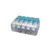 Inline kompaktní svorka pro rychlé a bezpečné spojování šesti vodičů bez nářadí. Vhodná pro pevné i lankové vodiče v rozsahu 0,5–4 mm², ideální do instalačních krabic.
