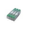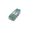 Kompaktní svorka pro rychlé a bezpečné spojování třech vodičů bez nářadí. Vhodná pro pevné i lankové vodiče v rozsahu 0,2–4 mm², ideální do instalačních krabic.