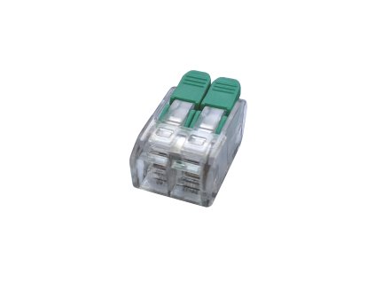 Kompaktní svorka pro rychlé a bezpečné spojování dvou vodičů bez nářadí. Vhodná pro pevné i lankové vodiče v rozsahu 0,2–4 mm², ideální do instalačních krabic.