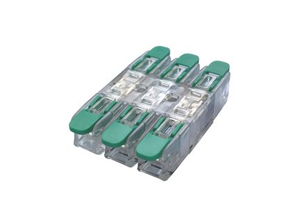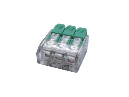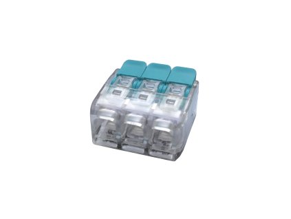 Kompaktní svorka pro rychlé a bezpečné spojování třech vodičů bez nářadí. Vhodná pro pevné i lankové vodiče v rozsahu 0,5–6 mm², ideální do instalačních krabic.