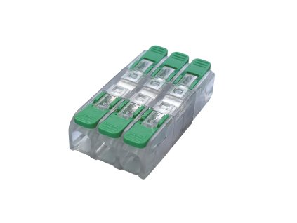 Kompaktní svorka pro rychlé a bezpečné spojování třech vodičů bez nářadí. Vhodná pro pevné i lankové vodiče v rozsahu 0,2–4 mm², ideální do instalačních krabic.