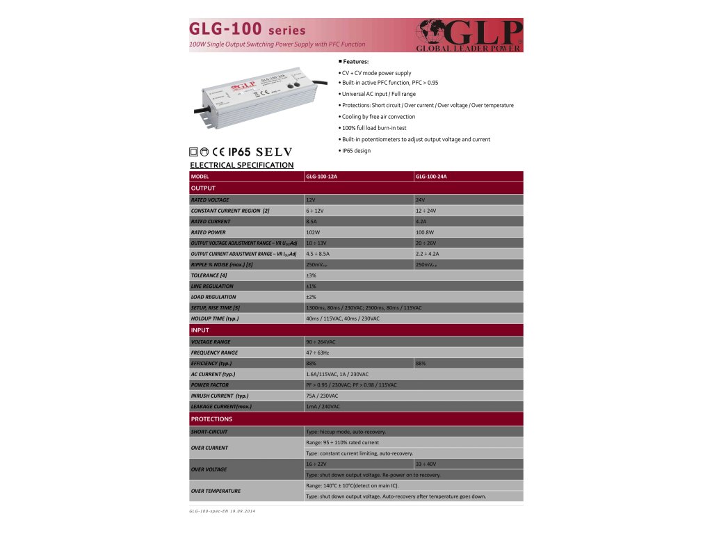 Spínaný napájecí zdroj GLG série 24V 4,2A | IP65 | 100,8W