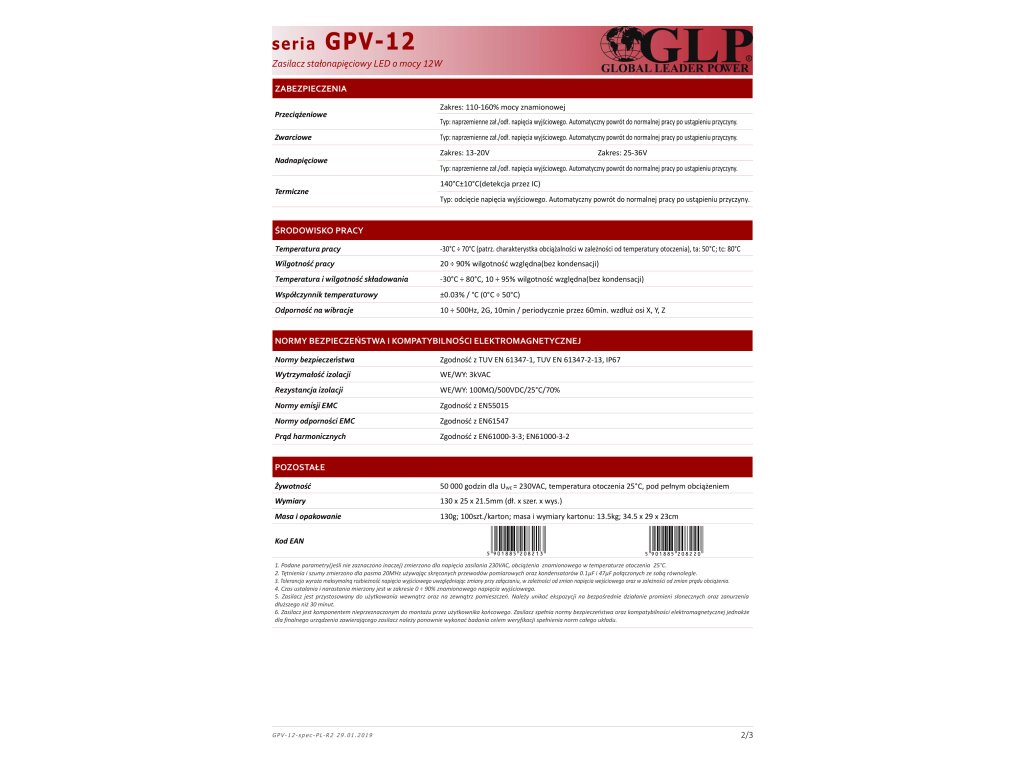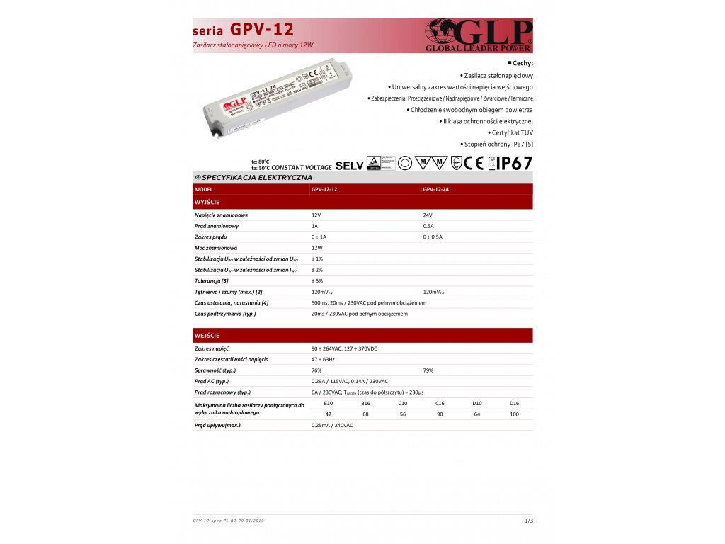 GPV-12-12 | napájecí zdroj pro LED | 12 VDC | 12W | 1A | IP67 |