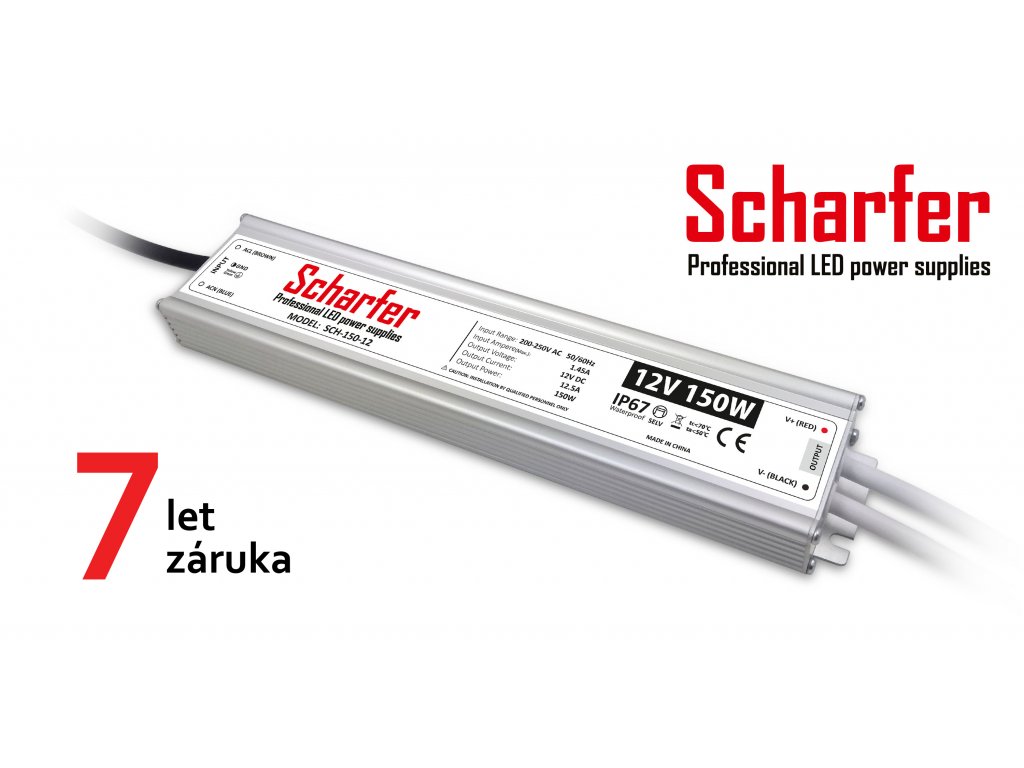 Scharfer profesionální napájecí zdroj pro LED | 12V | 150W | 12,5A | IP67